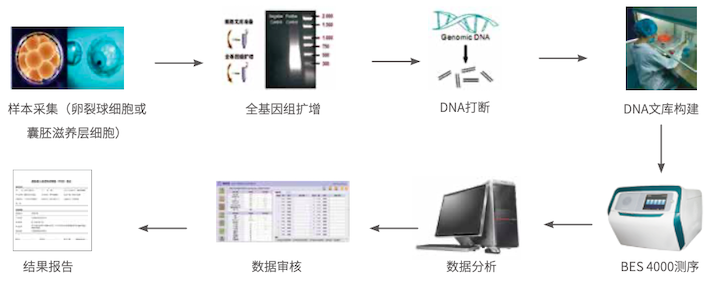 本检测对体外受精取得的胚胎活检物进行全基因组扩增,并采用高通量测序法,结合生物信息学分析,准确判断全部23对染色体的非整倍体异常,准确定位4Mb以上的微缺失微重复片段。该检测用来指导胚胎移植,可有效提高体外受精-胚胎移植(IVF-ET)治疗的临床妊娠率和活产率,降低早期流产的风险,降低患有染色体相关疾病缺陷患儿的出生率。