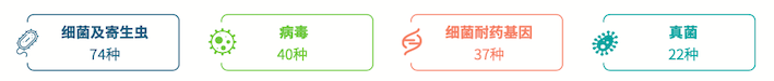 ☆ 广谱:一次检测完成74种细菌及寄生虫、40种病毒、22种真菌、37种耐药基因检测;
