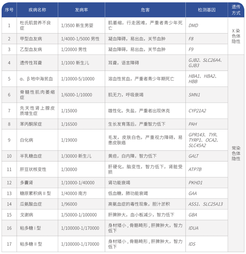 17种常见单基因遗传病基因检测