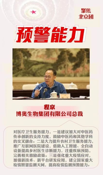 “我将在履职尽责中践行以人民为中心的开展思想,立足更精准更有效地预防疾病,用心用情守护人民健康。”程京代表表示。