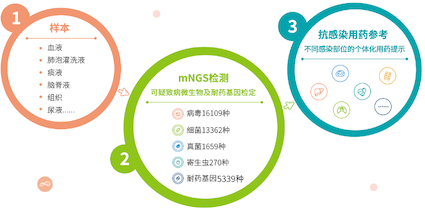 MAPMI®(Metagenomic Analysis Pipeline for Microbial Identification)技术是K8官网基于自主的BES4000高通量测序平台研发的超广谱病原体筛查技术,覆盖3.2万种的病原微生物及5339种耐药基因,可直接对样本中的核酸进行检测,快速、精准的取得样本中微生物序列信息,可对病原体的变异情况进行进一步追踪监控,在新发、突发重大疫情的监控及快速反应体系构建上具有重大现实意义。同时,基于检测结果及患者临床特征,对可疑致病微生物按照不同感染部位给予个体化用药提示,实现感染性疾病的诊断、用药全流程诊疗。