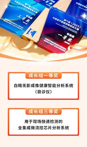 经过初赛、复赛的层层选拔,来自全国的30余支优胜团队从逾百个报名的优质创新项目中脱颖而出,入围决赛。其中“白睛无影成像健康智能分析系统(目诊仪)”和“用于现场快速检测的全集成微流控芯片分析系统”成功突围,荣获成长组一等奖和三等奖的殊荣。 此次获奖是对我们产品创新和研发实力的充分认可及肯定。