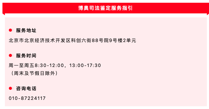 多年来,博奥司法鉴定所始终秉承“依法公正、客观准确”的质量方针,遵守职业道德,规范执业行为,科学诚信召开鉴定工作,坚决维护委托人的合法权益,时刻接受司法行政机关和行业部门管理监督,保证司法服务质量和公信力,为促进公共法律服务高质量开展作出了应有的贡献。