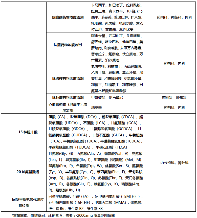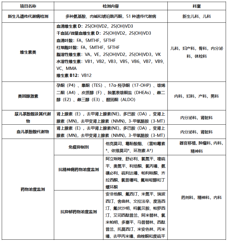 30种试剂,基本满足临床需求,试剂适用范围广:DR TQ Mass以及AB和Waters系列仪器。