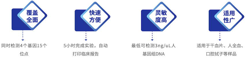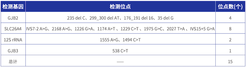 十五项遗传性耳聋相关基因检测试剂盒(微阵列芯片法)采用多重等位基因特异性PCR与通用芯片相结合(ASPUA) 技术,同时检测人全血基因组DNA中GJB2、SLC26A4、12S rRNA、GJB3基因共15个位点。