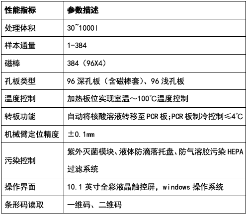 全自动核酸提取纯化仪利用磁棒及磁棒套的智能化配合,自动完成裂解样本、核酸特异性结合、核酸洗涤与洗脱等系列操作,并将得到的高质量核酸转板到PCR浅孔板中。