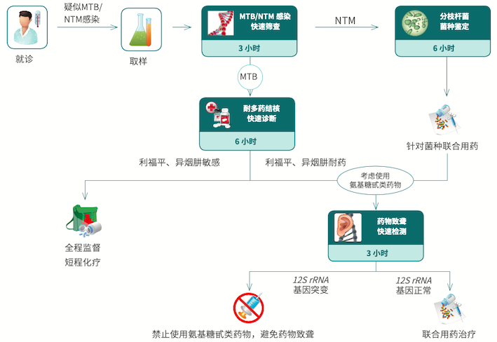 非结核分枝杆菌(NTM)与结核分枝杆菌(MTB)引发的疾病临床表现十分相似,且NTM对结核病一线药物异烟肼和利福平等的不敏感率达83.7%。感染早期,快速鉴定结核分枝杆菌和非结核分枝杆菌菌种,并制定针对性治疗方案,对临床治疗意义重大。